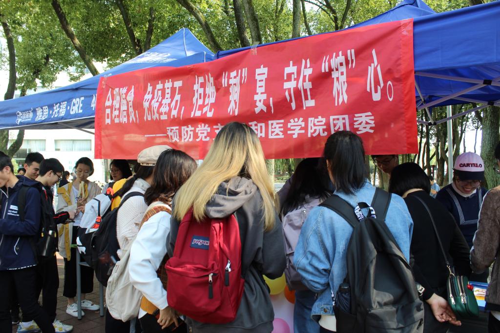 今年8月,习近平总书记指出,餐饮浪费现象,触目惊心、令人痛心!为切实培养大家的节约习惯,积极营造“浪费可耻、节约为荣”的校园氛围,医学院在有思广场向全校师生发起“光盘行动,拒绝浪费,从我做起”的倡议。