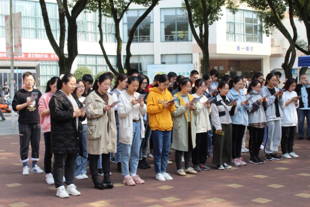活动开始,19级预防医学院团支部书记带领宣读倡议,表达着他们践行“光盘行动”的决心。同时,如何做到合理膳食,吃出健康、吃出美丽,预防医学学系主任张莉娜教授介绍了最新颁布的中国居民平衡膳食宝塔及指南,并现场为让大家答疑解惑。