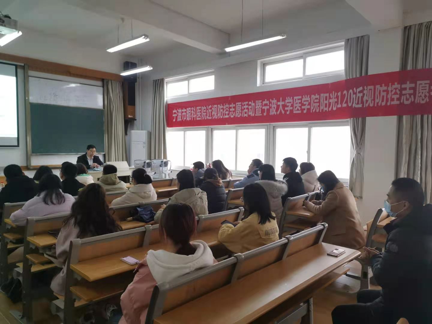 3月7日,宁波市眼科医院近视防控志愿活动暨杏吧视频 医学院阳光120近视防控志愿者知识培训在医学院至真楼404教室开展。宁波市眼科医院近视防控主任张来、赵波医生、医学院学工办张敏老师和30余名来自不同专业的志愿者参加了培训。