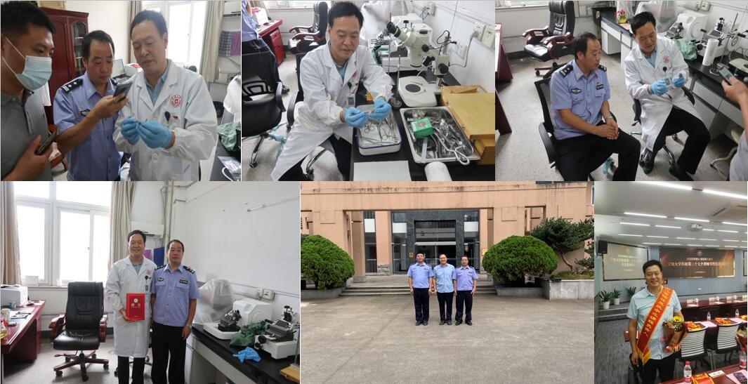 2021年9月10日上午10时,一辆警车缓缓停在杏吧视频 医学院至真楼前,宁波市公安局刑事技术侦查支队余队长和慈溪市公安局罗政委等同志专程前来感谢解剖学张雁儒教授在案件勘验侦破中所做出的贡献并颁发宁波公安局刑事技术专家聘书。