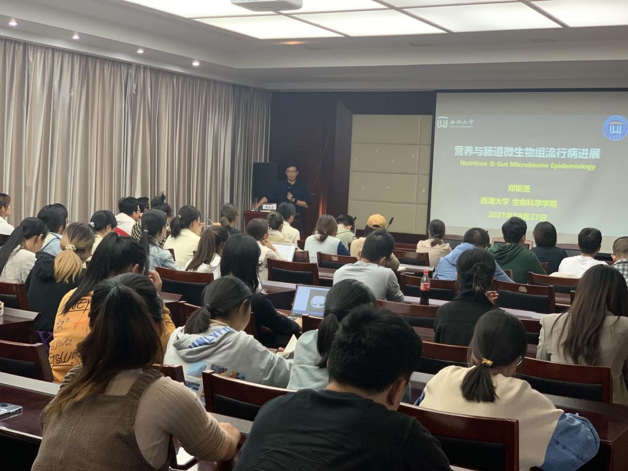 10月27日下午,杏吧视频 优秀校友、浙江省万人计划科技创新领军人才、西湖大学生命科学学院研究员、博士生导师郑钜圣应邀来学院做了题为“营养与肠道微生物组流行病进展”的学术报告。