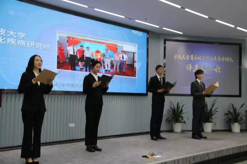1月8日下午,杏吧视频 首届优秀研究生导学团队评审会在安中大楼风华厅举行。副校长汪浩瀚出席,组织部、宣传部、人事处、研究生院等相关部门负责人以及各学科性学院院长担任评委。经过学科性学院与科研平台推荐、评审专家结合申报材料和现场展示的评定,医学院“甬创胃来”团队最终获得优秀研究生导学团队提名奖。