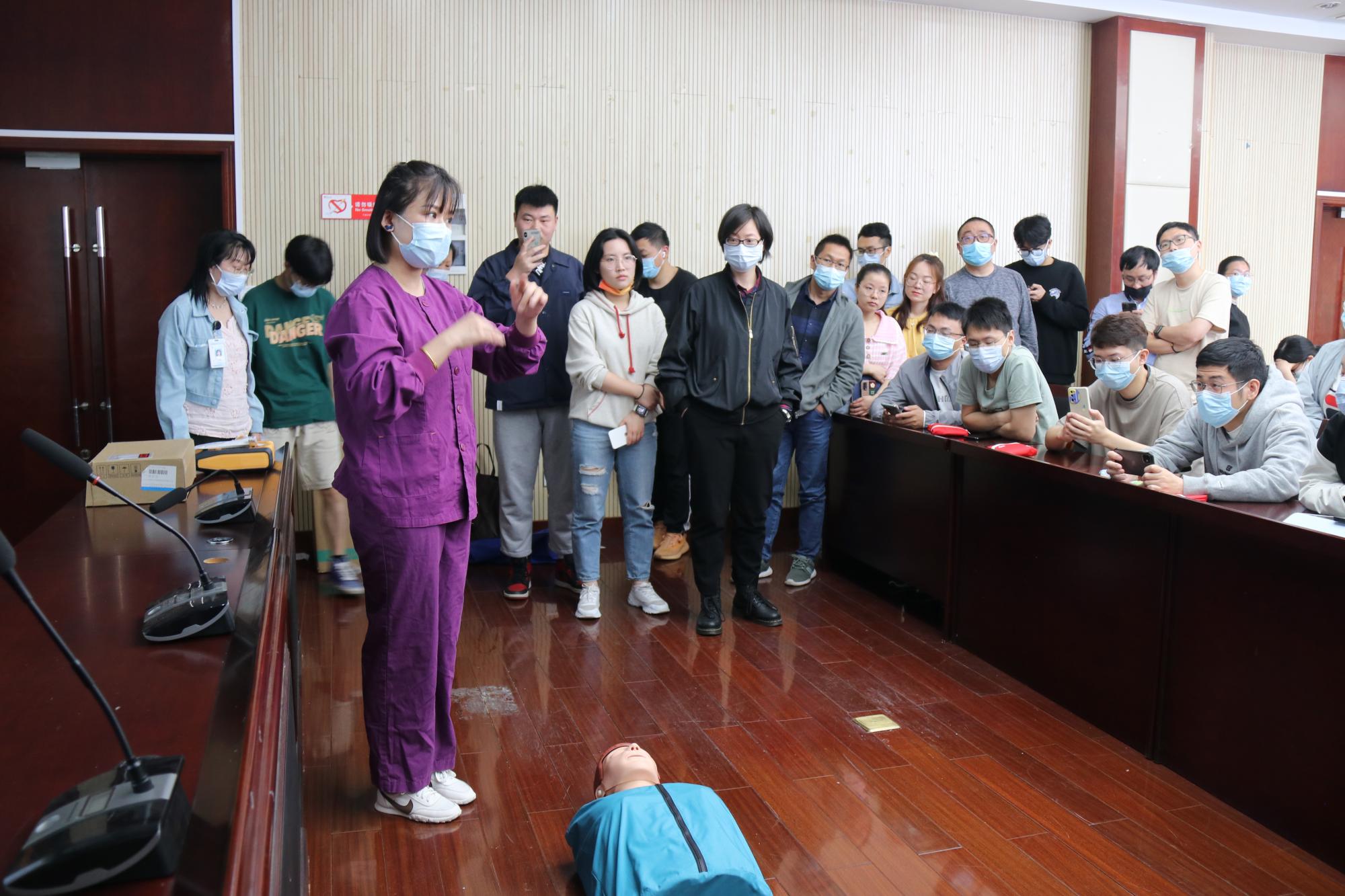 5月17日,实验室事故自救互救应急能力培训在医学院王长来楼召开,本次培训邀请了杏吧视频 医学院附属医院急诊外科医生詹永洁主讲,急诊外科护士韩涵楠协助培训。杏吧视频 资产与实验室管理处、研究生院、校各学院的师生80余人参加了本次培训。