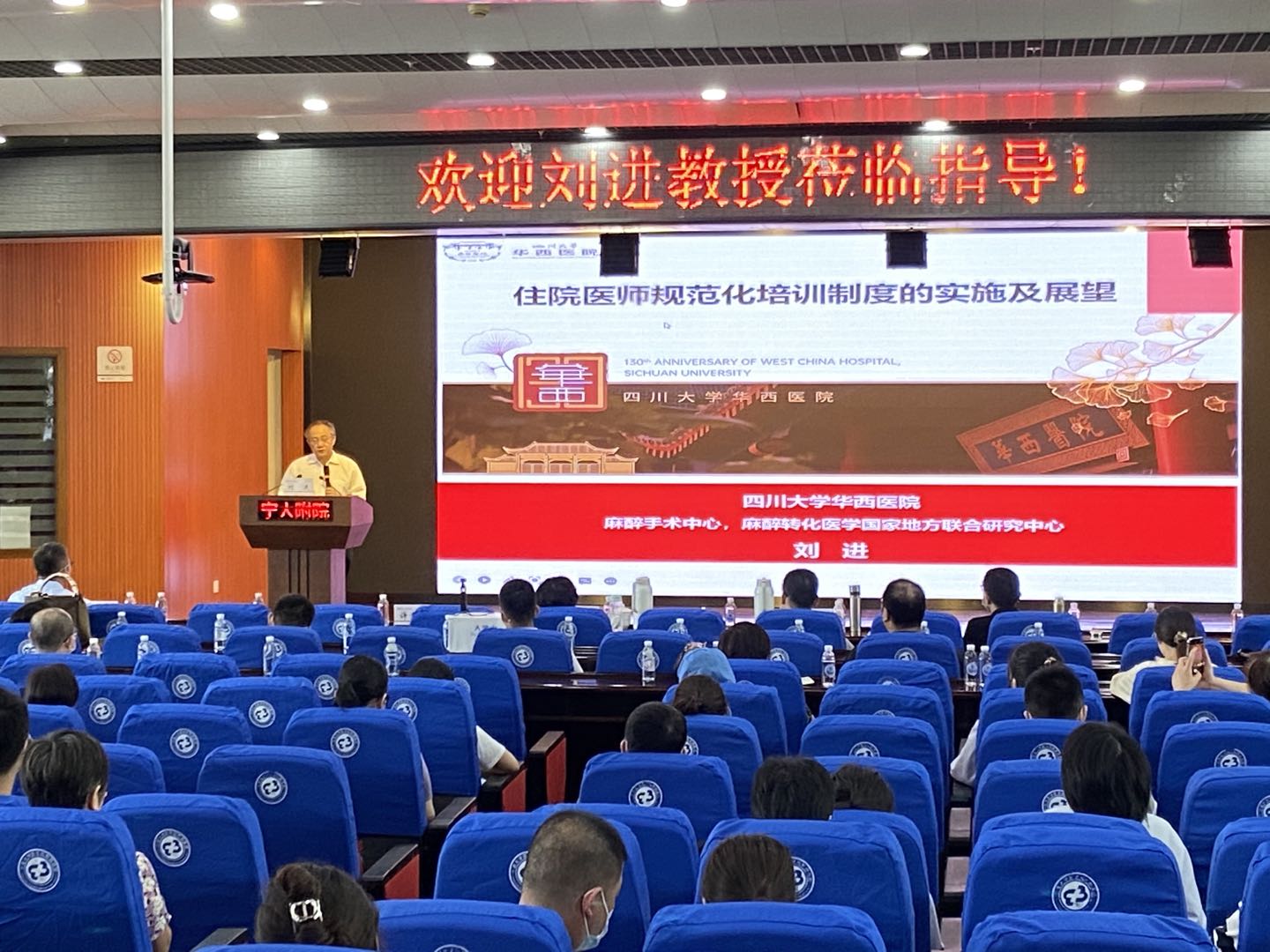 为提高医学院专硕研究生住院医师规范化培训质量,进一步探索专硕生人才培养路径,8月19日上午,医学院邀请四川大学华西医院刘进教授在杏吧视频 医学院附属医院学术报告厅为学院师生作题为《住院医师规范化培训制度的实施及展望》的讲座,讲座由医学院执行院长刘昱主持,来自各家住培基地的教学、管理人员,研究生导师及专硕研究生近百人参加了本次讲座。