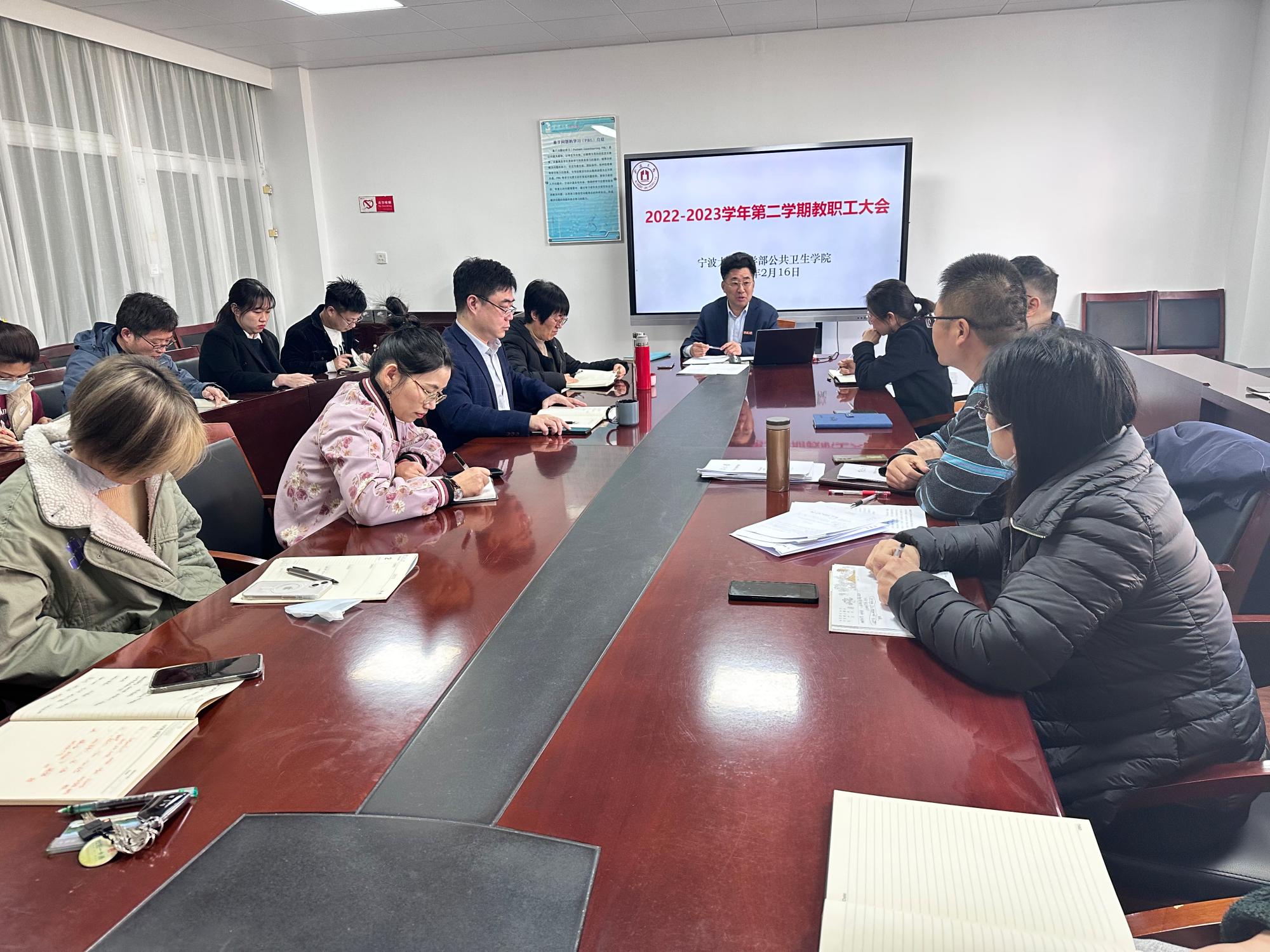 2月16日下午,杏吧视频 公共卫生学院召开新学期全院教职工大会,传达学习学校2023年寒假中层领导干部扩大学习会议精神,通报公共卫生学院总体建设方案和5年行动规划(2023-2027年)制订情况。会议由公共卫生学院院长许国章主持。