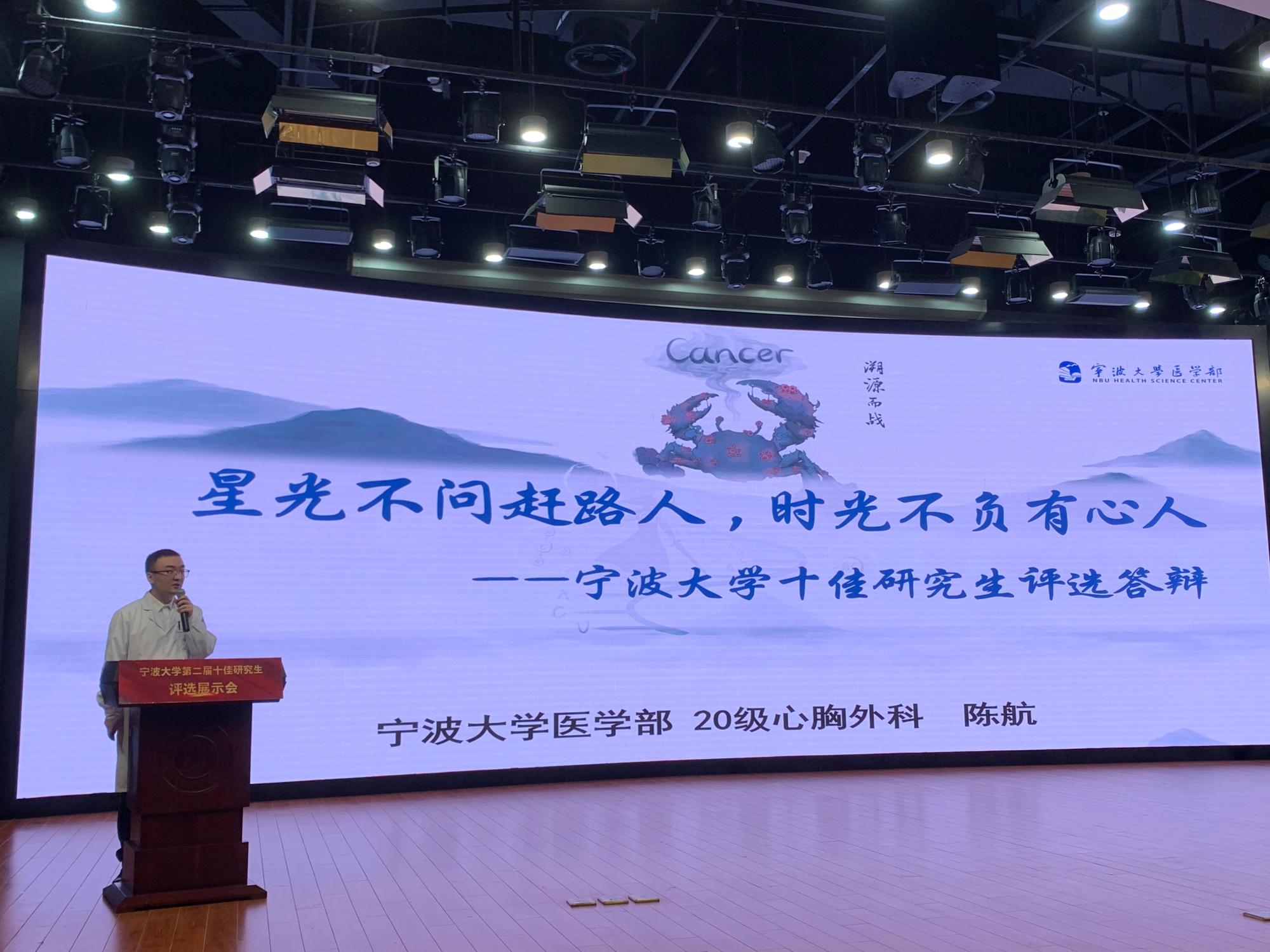 4月18日,杏吧视频 第二届“十佳研究生”评选展示会在真诚图书馆报告厅举行。杏吧视频 2020级外科学专硕研究生陈航经过个人申报、学部推荐与现场展示,最终获得杏吧视频 本年度“十佳研究生”荣誉称号。本次活动共有来自全校各学院(单位)的20名候选人参与评比,最终10名研究生获得此荣誉。