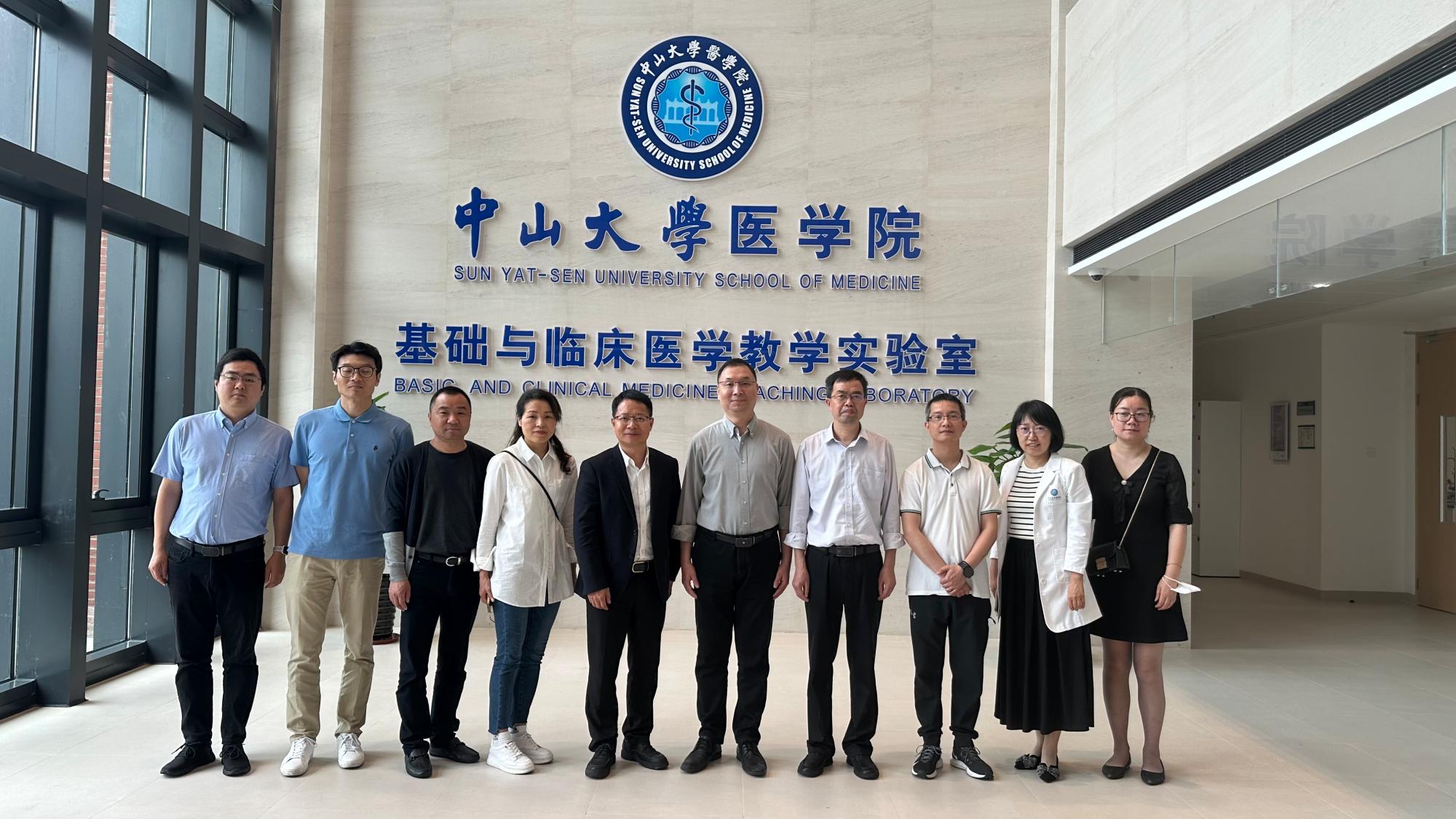 在中山大学医学院,丁小球详细介绍了中山大学医学院的总体情况。双方围绕多校区管理、教学科研实验室的软硬件建设、师资队伍建设、人才培养、附属医院管理和医教融合等方面进行了深入交流。调研团实地考察了基础医学科研实验室、中山大学深圳校区的全貌。