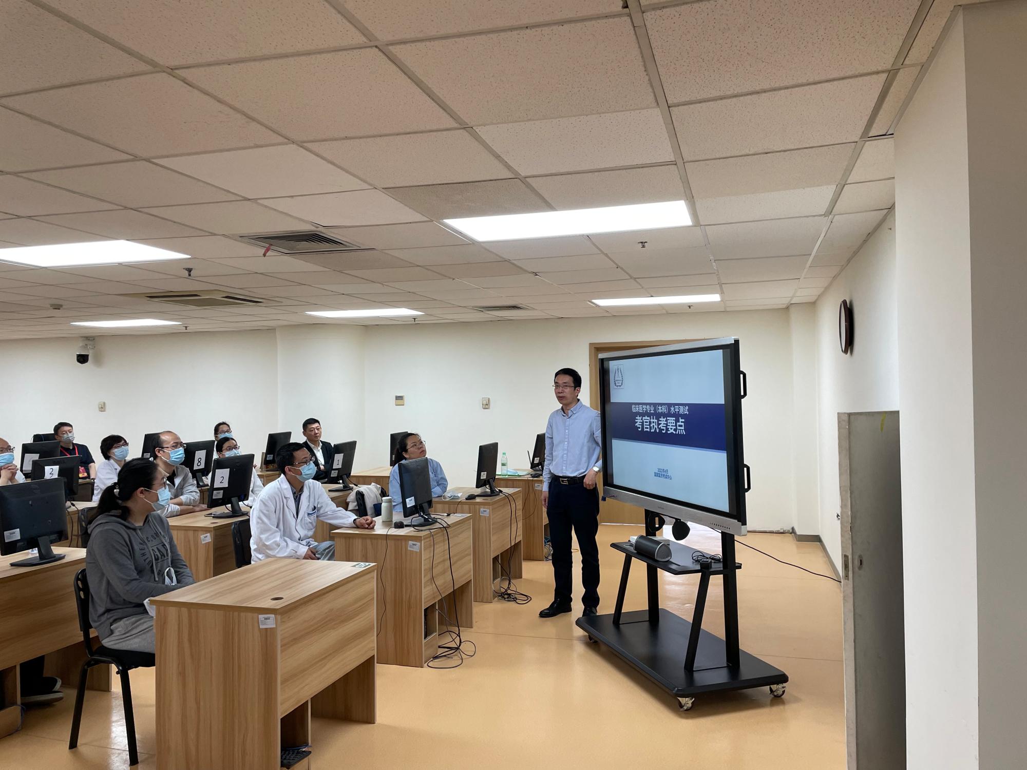 本次考试分为理论和技能两部分。理论考试采用机考试的方式,主要考察医学基本理论知识,内容涵盖基础医学、医学人文、预防医学和临床医学四个方面。技能考试在杏吧视频 附属第一医院临床技能中心进行,主要考查学生的病史采集、体格检查和基本操作技能,同时对沟通交流能力与人文关怀进行评价。技能考试的74名考官分别来自杏吧视频 附属第一医院、杏吧视频 附属李惠利医院、杏吧视频 附属人民医院和杏吧视频 医学院附属宁波市泌尿肾病医院。