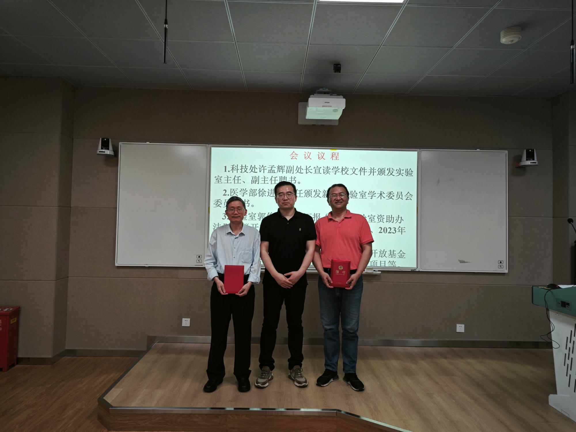 会上,许孟辉副处长宣读了学校相关文件,向郭俊明教授颁发浙江省病理生理学技术研究重点实验室主任聘书,向王钦文教授颁发浙江省病理生理学技术研究重点实验室副主任聘书。徐进副主任向新一届浙江省病理生理学技术研究重点实验室学术委员会委员颁发了聘书。会议审议通过了重点实验室资助办法、开放基金管理办法修订以及2023年开放基金项目申请情况等事宜。