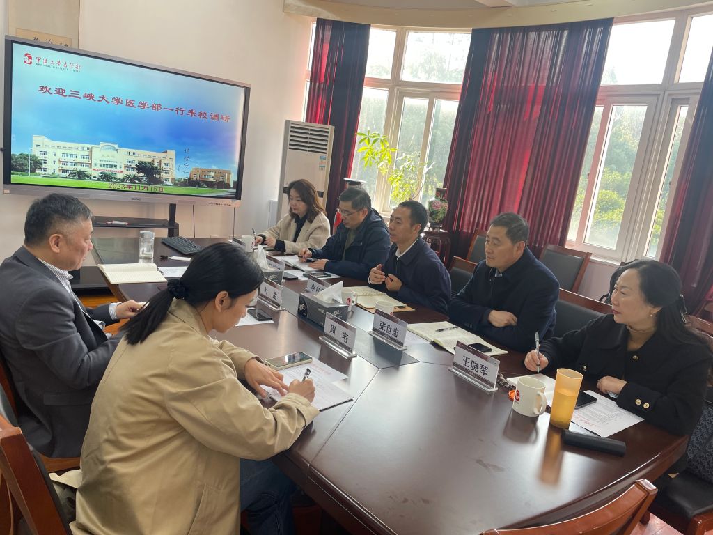 11月15日上午,三峡大学杏吧视频 副主任李自成、基础医学院副院长张世忠等一行5人来杏吧视频 交流访问,杏吧视频 执行主任刘昱、医学教育专项工作负责人叶孟等接待了客人。