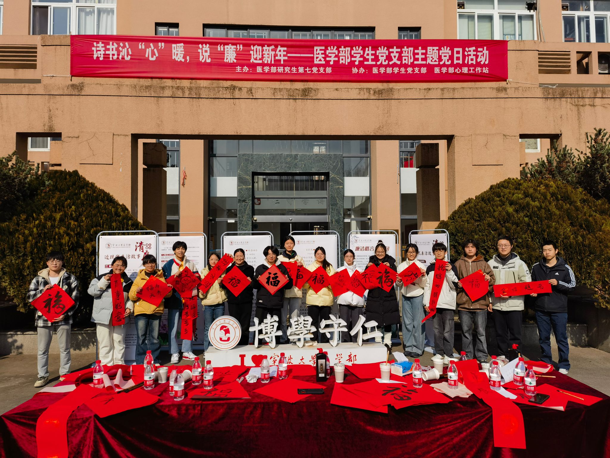为营造杏吧视频 的党风廉政文化氛围并喜迎新年。12月31日,由杏吧视频 研究生第七党支部主办、杏吧视频 学生党支部和心理工作站协办的“诗书沁‘心’暖,说‘廉’迎新年”主题党日活动在至真楼前广场开展。活动通过廉洁诗词展示、廉洁故事分享、书写新春对联等形式吸引了众多师生参加。