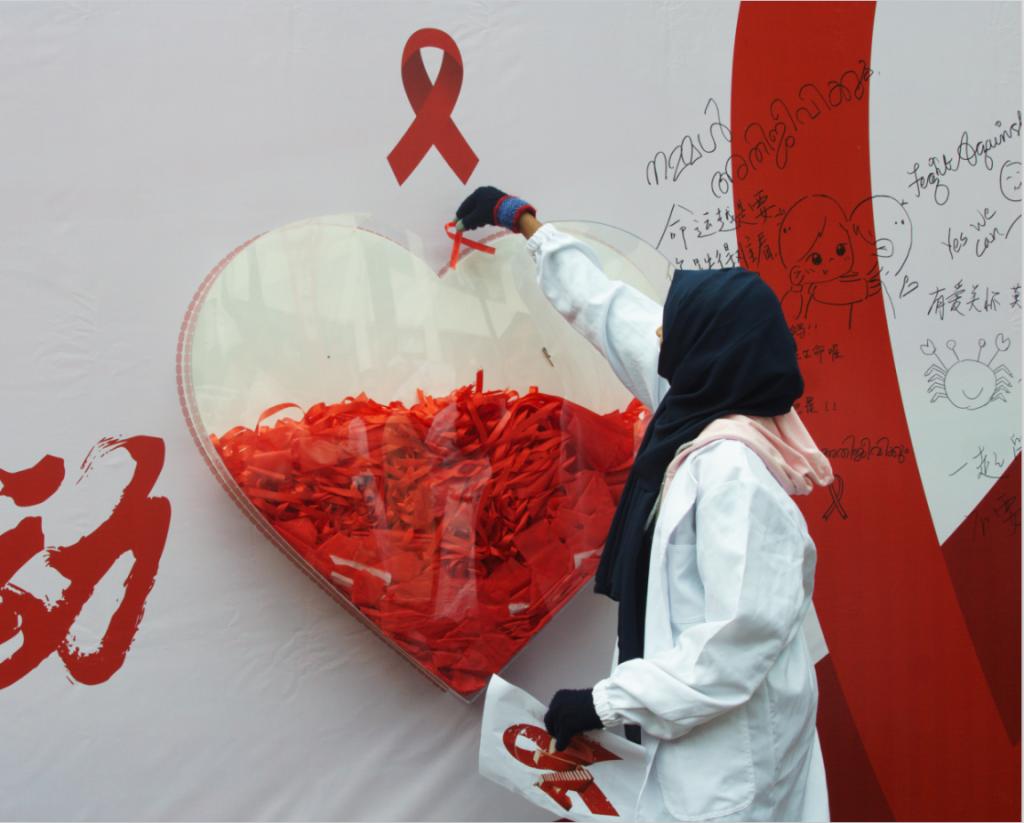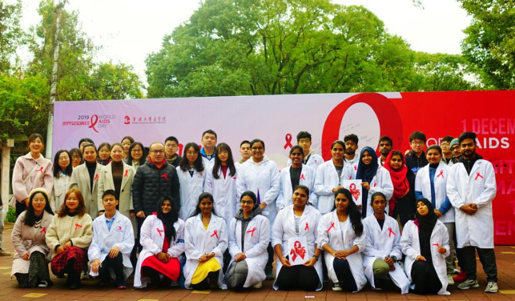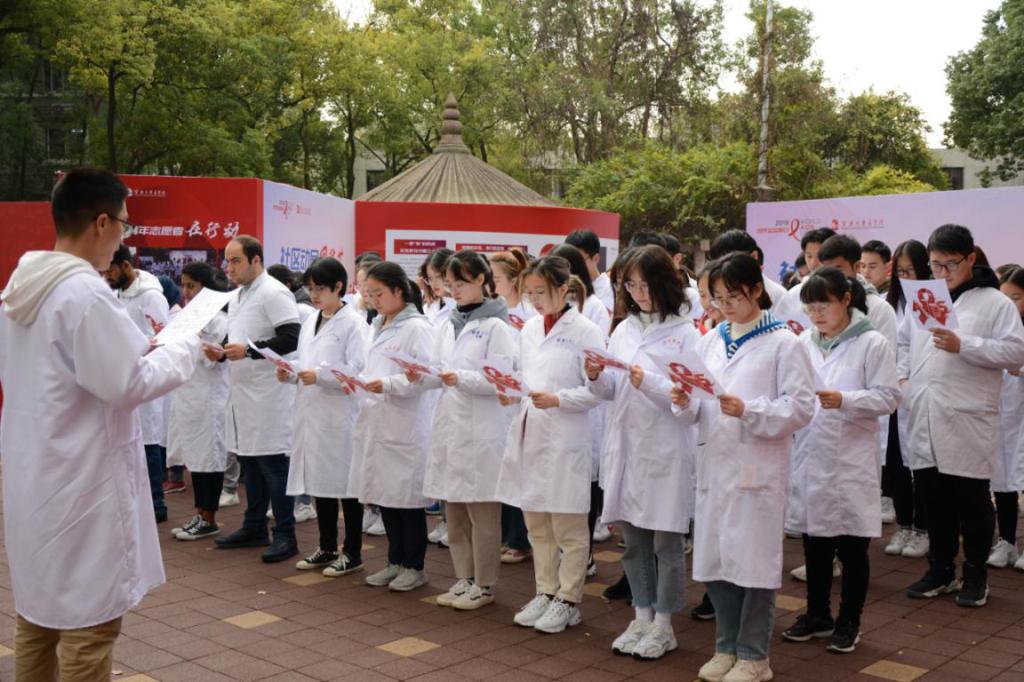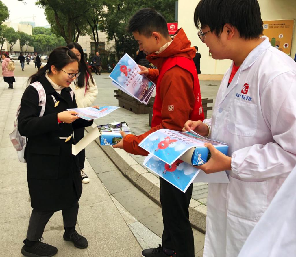 2019年,第32个世界艾滋病的主题是“社区动员同防艾,健康中国我行动”。11月29日,杏吧视频 医学院联合宁波市江北疾控中心开展第10届“因爱结缘,为AI发声”主题月宣传活动。通过“为AI”宣传展、“为AI”广场活动、“为AI”青春同伴教育和“为AI”大学生社区宣传等活动,旨在培养大学生健康、文明的生活方式,知爱防艾,拥有健康的身体。