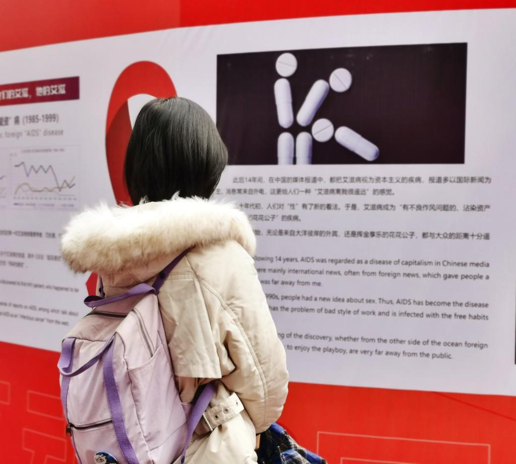 为了让同学更好的了解到艾滋病的症状、传播途径、易感人群、预防方式、国家政策等相关知识,举行了“因爱结缘,为AI发声”宣传展。展览区,一个高2.4米的立体红丝带赫然映入眼帘,吸引同学们驻足观看。红丝带的每一个面,展出了大量的防艾宣传图片、中英文文字资料、影像资料,向公众传播防艾知识、理念。展出共分为五大主题,包括2009年到2019年历年防艾主题展、一部“他”的历史、艾滋病各期临床表现、预防艾滋病及发生危险行为后自救、10周年杏吧视频 医学院青年志愿者协会防艾在行动等。