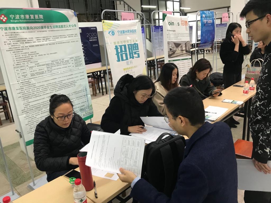 11月27日上午,杏吧视频 医学院“医路有你”2020届医学类毕业生专场招聘会在杏吧视频 就业市场顺利举行。本次招聘会邀请了来自鄞州、奉化、镇海以及杭州等地市的近二十余家用人单位前来参加,为毕业生提供了临床、预防、检验、麻醉、影像、心电、病理、公卫等百余个岗位。医学院临床医学、预防医学本科毕业生、各专业硕士毕业研究生、科院临床医学专业本科毕业生以及来自其他院校的医学类毕业生参加了本次招聘会。
