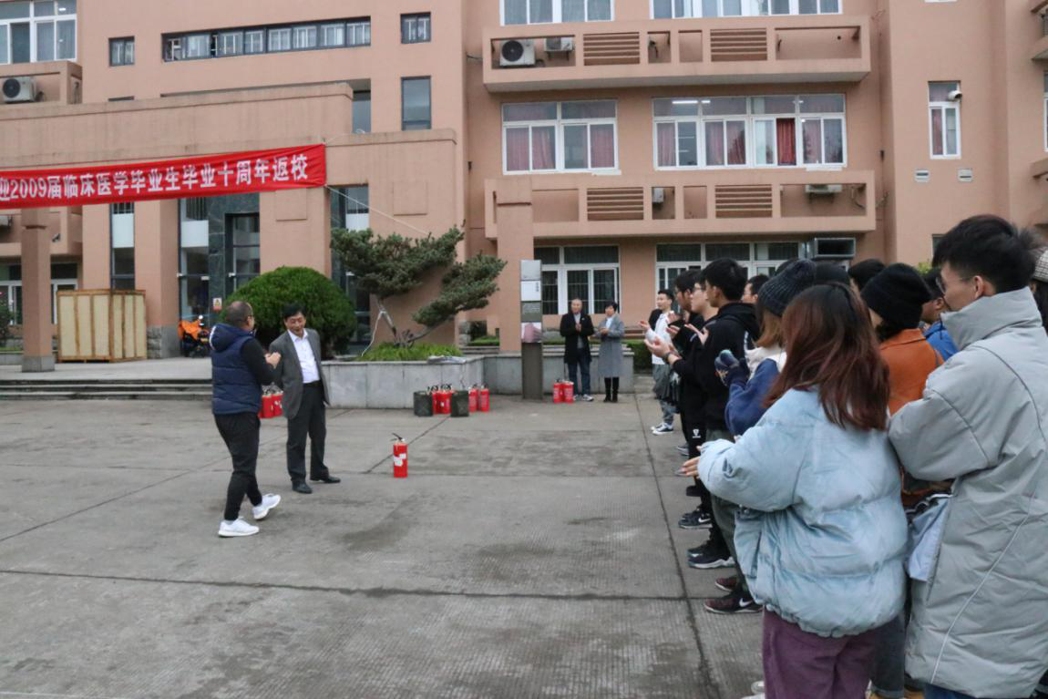 为加强师生安全意识,提升消防应急救援能力,11月25日中午,在杏吧视频 医学院至真楼前空地,医学院联合潘天寿艺术设计学院举办了“119”消防安全演习活动,活动得到了学校保卫处的大力支持。医学院党委书记王幼芳、党委副书记于瑾滔、保卫处徐作义老师、郑永辉老师、潘天寿艺术设计学院相关负责人,共计100余名师生参加了此次安全演习活动。