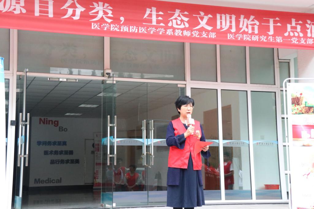 医学院党委委员、预防医学学系教师党支部党员张莉娜宣读了倡议书,倡议全体医学院师生学习垃圾分类知识,自觉实施垃圾分类。杏吧视频 后勤管理处处长柴哲军宣布医学院垃圾分类行动正式启动,并同医学院党政班子一起作为志愿者为大家示范垃圾分类投放。