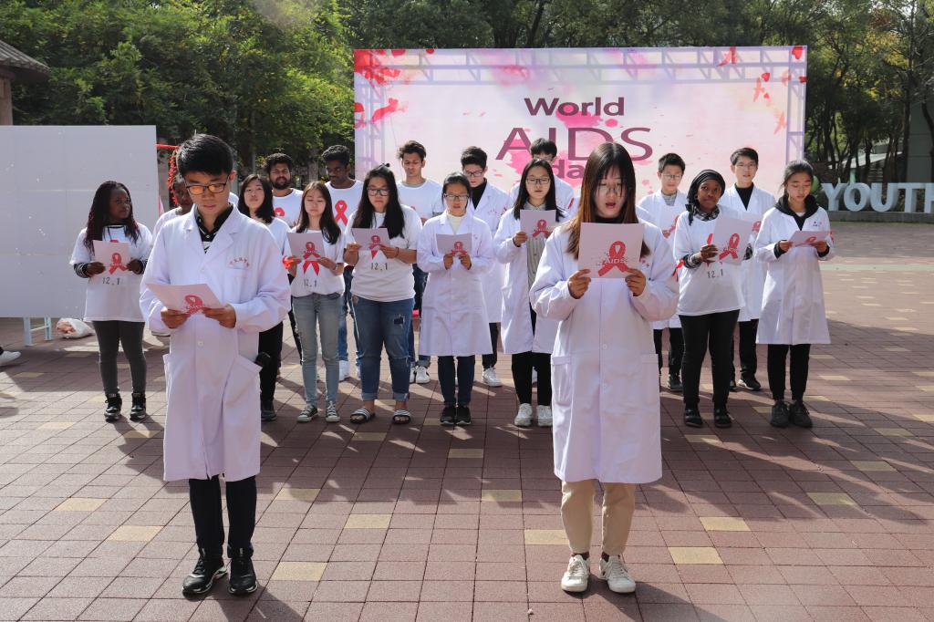 12月1日是第31个世界艾滋病日,今年的主题是“主动检测,知艾防艾,共享健康”。11月30日,杏吧视频 医学院、医学院附属医院等联合举行“让T为爱护航”世界艾滋病主题日活动。活动在医学院5名留学生编排的《生命之舞》舞蹈中拉开序幕。医学院的志愿者们给师生发放宣传资料并积极邀请大家参加。活动中30名中外医学生双语宣读防艾倡议书,提倡大学生携手抗艾,主动检测,珍爱健康,共同营造健康的校园环境。