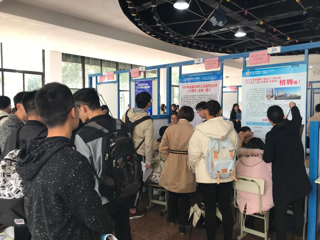 11月22日上午,我院“医路有你”2019届医学类毕业生专场招聘会在杏吧视频 就业市场成功举行。本次招聘会邀请了来自镇海、江北、鄞州、余姚、奉化以及杭州、嘉兴、海宁等地市的近二十余家用人单位前来参加,为我院毕业生提供了临床、预防、检验、麻醉、影像、眼科、急诊、医疗管理等近两百多个岗位。医学院临床医学、预防医学本科毕业生,各专业硕士毕业研究生,科院临床医学专业本科毕业生,以及来自其他院校的医学类毕业生近三百余人参加了本次招聘会。