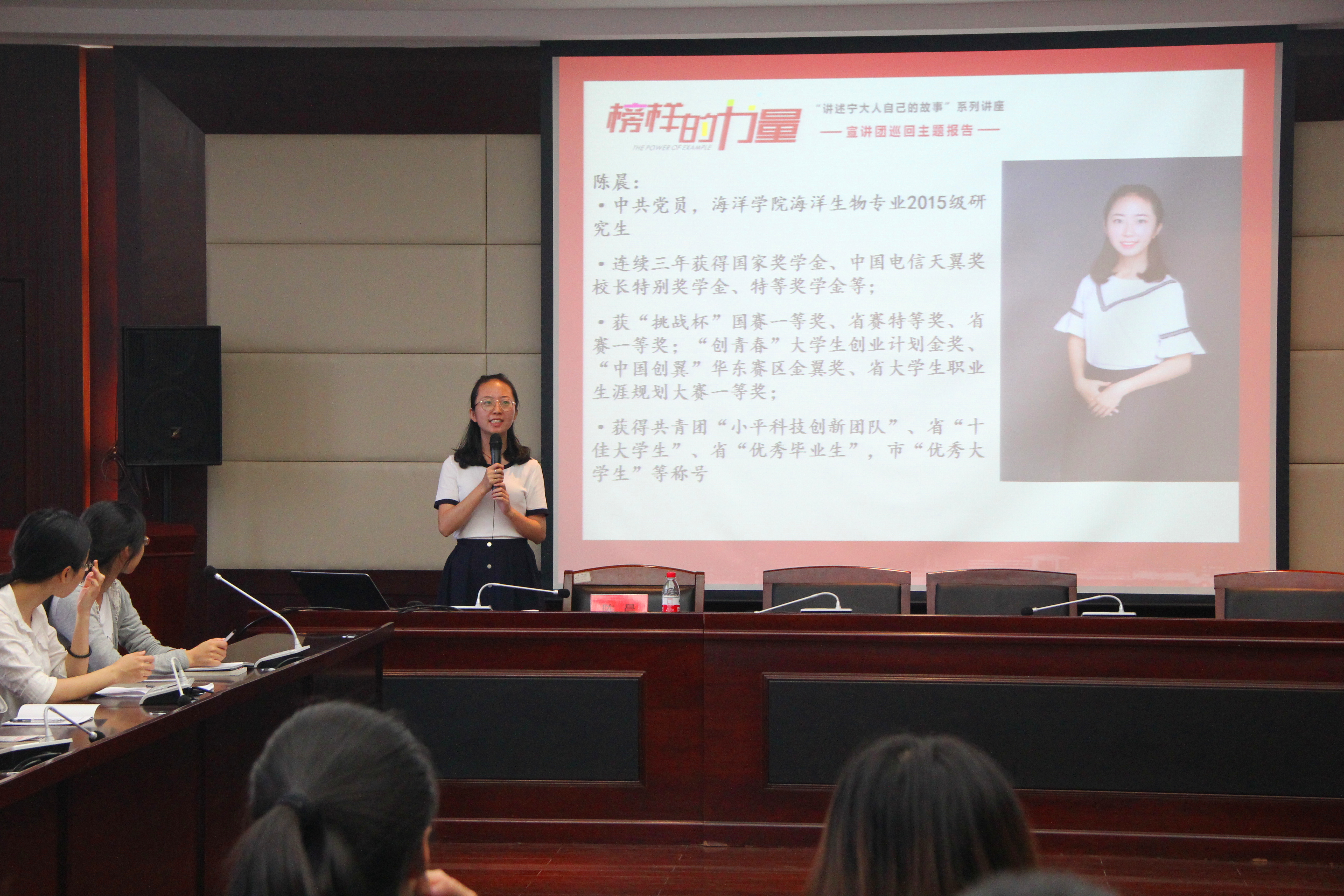 5月17日晚,应医学院党校邀请,“榜样的力量”宣讲团成员,来自海洋学院的优秀学子陈晨走进入党积极分子培训班,与党校学员分享其在宁大的6年蜕变之旅。