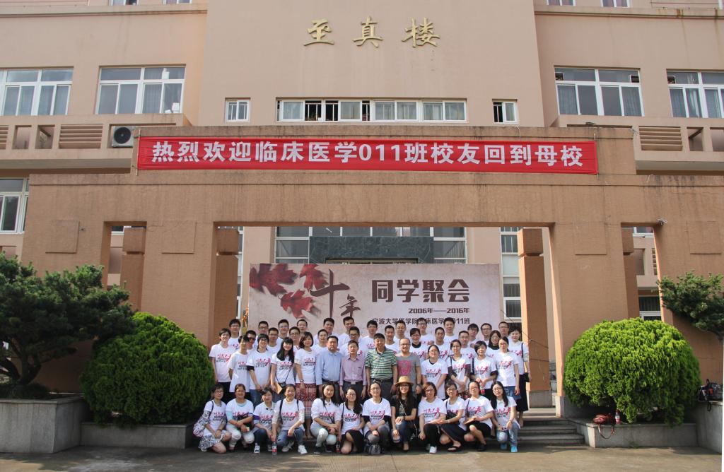 6月5日,医学院临床医学本科2006届1班50余位校友回到母校,举行了毕业十周年同学会。医学院党委副书记于瑾滔,原医学院党委副书记、011班班主任孙欢欢,曾担任该班任课教师的尹维刚、马青、郭俊明等老师应邀参加了聚会活动。