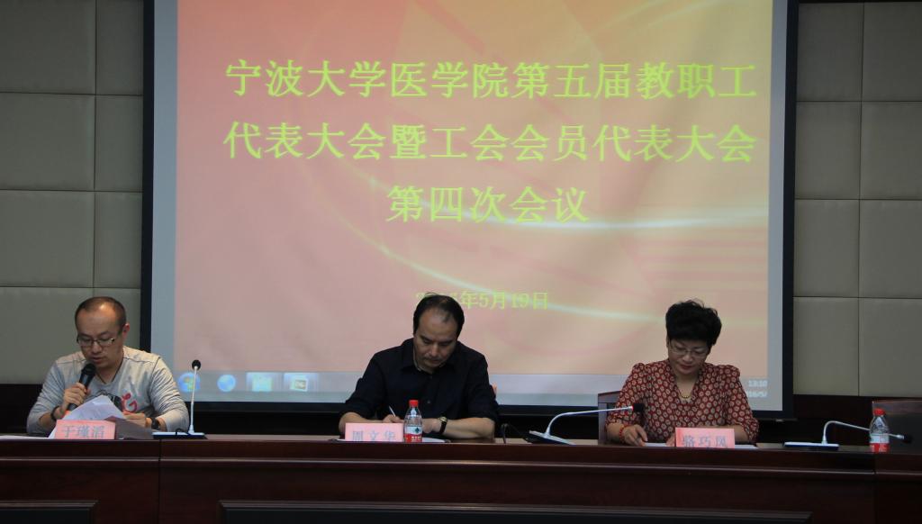 5月19日下午,医学院召开第五届教职工代表大会暨工会会员代表大会第四次会议。会议听取和审议了2015年院长工作报告和2016年学院财务预算情况;会议以无记名投票的方式审议通过了《杏吧视频 医学院“十三五”(2016-2020)发展规划》、《杏吧视频 医学院第六轮岗位设置与聘任实施办法》和《杏吧视频 医学院岗位绩效工资实施细则》,增补了5名“双代会”代表。全院29名代表出席了会议,会议由医学院党委书记骆巧凤主持。