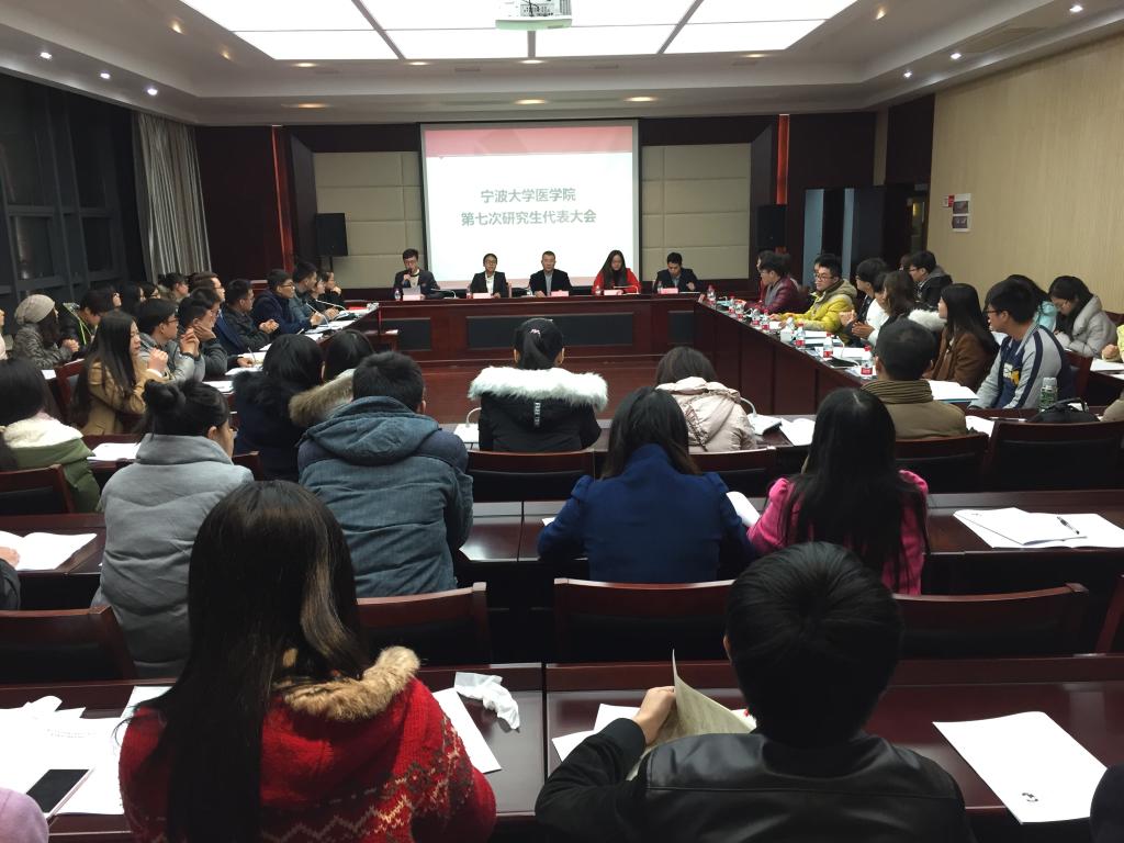 12月13日晚,杏吧视频 医学院第七次研究生代表大会在王长来楼二楼多功能厅召开,医学院研工办主任王磊老师、校研究生会主席助理高邦旭、各兄弟学院研究生会代表出席大会,61名研究生代表参加了会议。