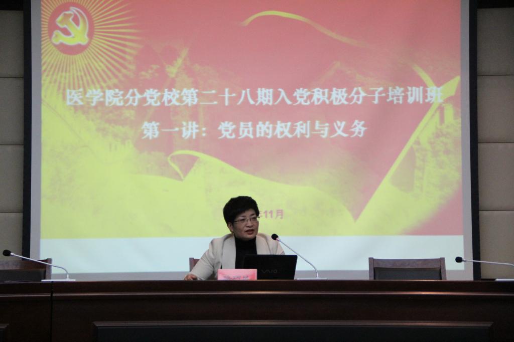 11月24日晚上,医学院分党校第二十八期入党积极分子培训班开班仪式在王长来楼二楼多功能厅举行。医学院党委书记骆巧凤、学工办相关老师和全体党校学员参加仪式,会议由学工办主任王磊主持。