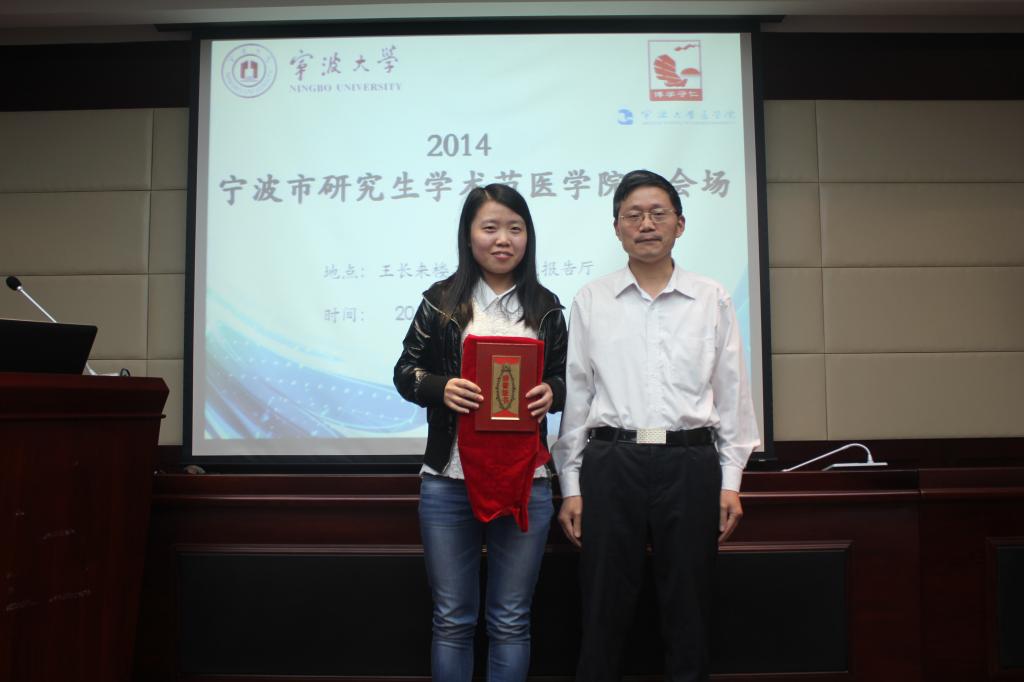 经过两个半小时的激烈角逐,周丽新、朱徐慧和应炎燕所报告的论文分别获得2014年宁波市研究生学术节医学院分会场报告会的金、银、铜奖。周丽新的导师金米聪研究员获得“最佳指导老师”称号。高巧艳凭借现场的优异表现获得“最佳报告奖”。此外,报告会上还产生了1个“最佳提问奖”和3个“幸运观众奖”。