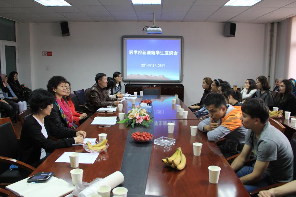 3月26日,医学院在王长楼202会议室召开新疆生座谈会。院党委副书记孙欢欢,学生处新疆生辅导老师窦琳,院教学科研办、学工办相关老师及全体新疆生参加了此次座谈会。