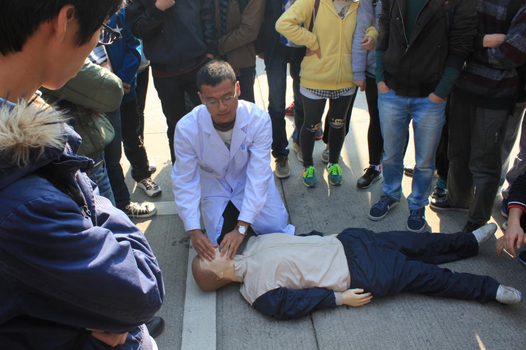 活动中,阳光120的同学现场讲解演示对伤员的救治,包括人工呼吸,伤口的清理包扎,心肺复苏,正确使用担架,救护人员等,校保卫处老师对灭火器使用的讲解都让大家正确地认识到如何有效的应对事故。而接下来的两个趣味活动,无论是障碍灭火,还是伤员抢救,更是将这些理论运用到了实践中。在障碍灭火中,大家都正确地使用灭火器将火患扑灭,也知道了在灭火过程中如何保护自己;抢救伤员的过程中,不仅及时的将伤员送到了安全地带,而且在抢救中有效地避免了对伤员的伤害。
