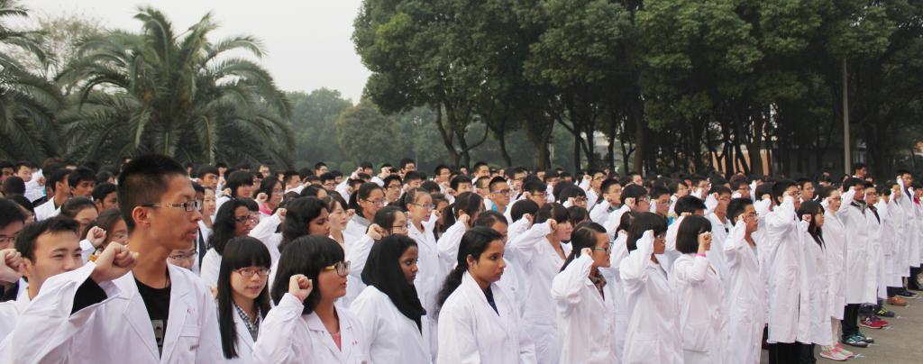 此次宣誓仪式是杏吧视频 2013年建校纪念周系列活动、医学院第13届新生节系列活动的组成部分,也是医学院“两誓对接,塑人塑心”医德医风教育活动的重要内容。此次活动采用中英文双语模式进行,是在医学院不断走向国际化的背景下团学工作探索和达到的新的高度。