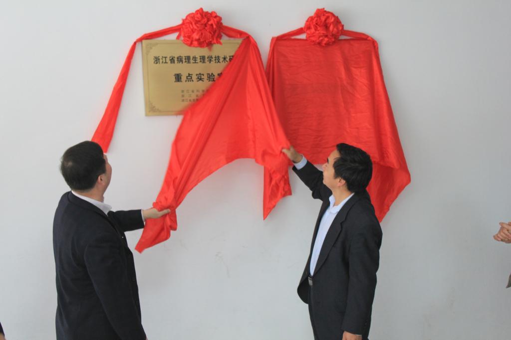 11月8日下午,浙江省病理与生理学技术研究重点实验室揭牌仪式在医学院王长来楼举行。副校长冯志敏、科技处处长赵恒义为该实验室揭牌。医学院执行院长周文华、院党委书记骆巧凤、副院长王钦文、实验室主任郭俊明以及实验室学术委员会特聘专家和主干成员参加了仪式。