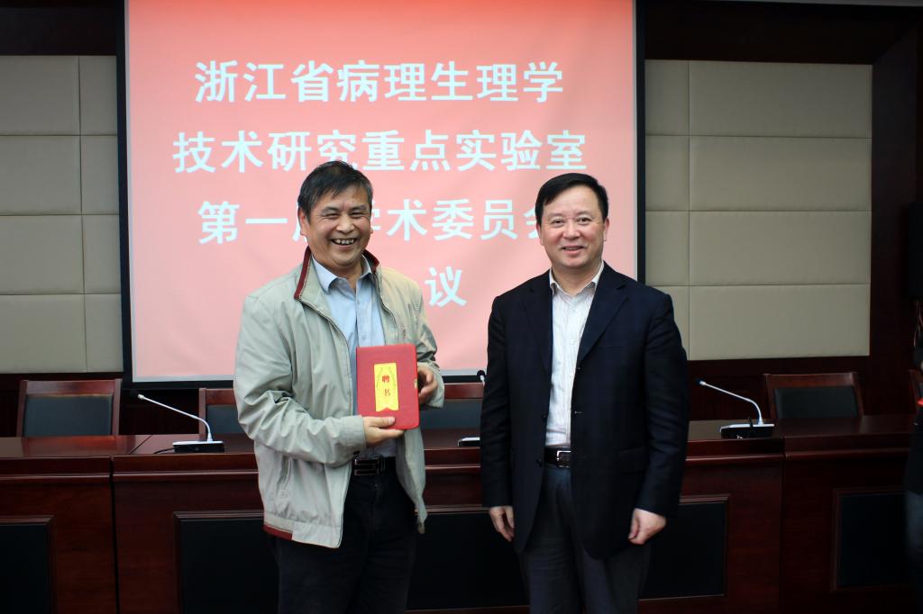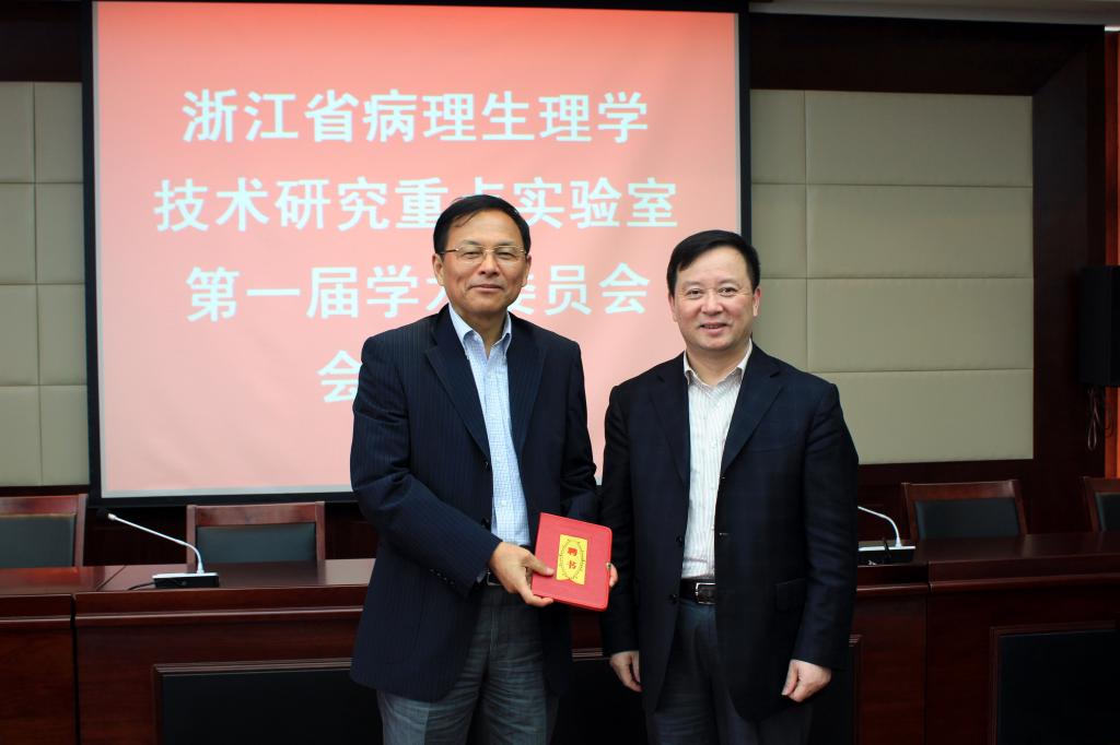 在浙江省病理与生理学技术研究重点实验室第一届学术委员会会议上,副校长冯志敏为浙江大学魏尔清教授、上海交通大学姜宗来教授、中山大学高国全教授、复旦大学邢清和教授及上海交通大学秦胜营教授以及医学院相关受聘专家颁发了学术委员会聘书。会上实验室主任郭俊明教授汇报了实验室概况、目前建设进展,以及建设计划和目标。各位专家分别就实验室今后的建设和发展问题提出了建设性的意见和良好的建议。会议审议了实验室的相关管理规定,对具体工作内容进行了讨论和分工,并对2013年申报的开放基金项目进行了评审。会议专家讨论热烈,气氛融洽,取得了圆满的成功。