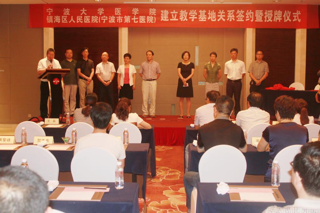 7月24日下午,我校与镇海区人民医院(市第七医院)建立教学基地关系签约暨授牌仪式举行。副校长郑孟状,镇海区副区长张颖出席仪式并讲话。我校校办、教务处相关负责人,医学院党政班子,镇海区府办、镇海区卫生局相关负责人,镇海区人民医院党政班子等参加了仪式。