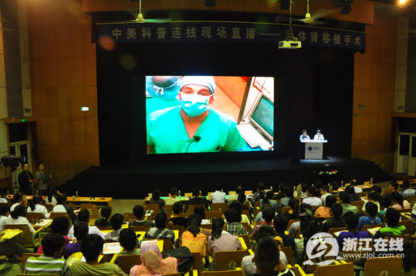 5月21日晚,由浙江省科协、美国新泽西自由科学中心,美国圣巴拿巴医学中心共同组织的直播活体肾脏移植手术在鄞州中学演讲厅开展,杏吧视频