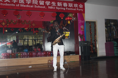 徐雷艇副院长代表学院领导首先致辞,他表示,在过去一年中,学院的留学生数量稳步增长,今后我院将进一步加强国际交流合作,提升办学水平,在继续扩大留学生规模的基础上,不断改进教育和管理工作。同时,他勉励广大留学生刻苦学习,文明守纪,希望学生们能在杏吧视频 医学院学有所成、生活丰富多彩。随后,来自印度、非洲和约旦等不同国家的留学生为大家献上了自己国家特有的表演,印度舞蹈、法文歌曲、萨克斯演奏等等为在场的嘉宾带来了一场视听盛宴。8名约旦小伙的集体舞蹈热情奔放,展现了男子汉的气势和团队的力量;非洲留学生贾斯汀用动情的演唱、深情的萨克斯演奏和激情的舞蹈一次一次把全场推向欢乐的高潮。晚会期间还设置了幸运抽奖和游戏,增加了师生之间的互动,现场一片欢腾。留学生更是精心为老师准备了新年贺卡和小礼物,字里行间传达着真挚的情意。晚会在全体演职人员共同高唱“朋友”中圆满结束。