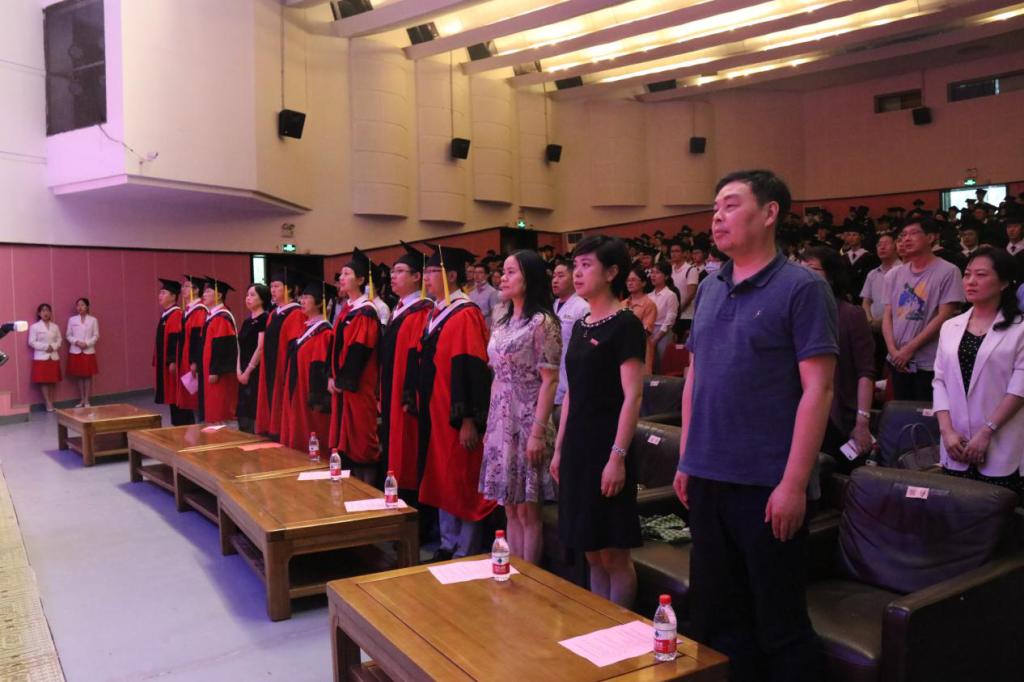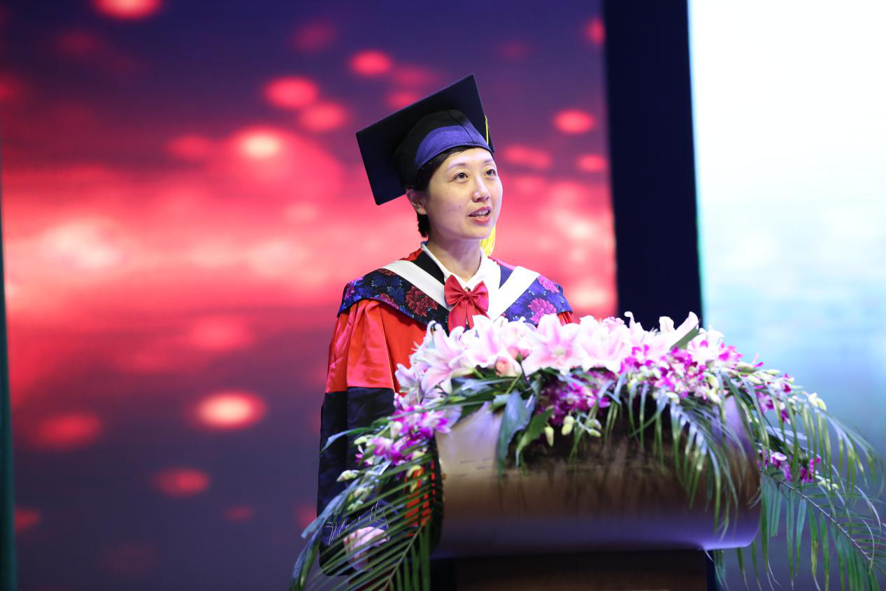 仪式在激昂的国歌声中拉开帷幕。优秀研究生沈梦欣、李洲,优秀本科生揭君津以及留学生MOHAMMED FARHAN作为毕业生代表分别发言。他们与同学们分享着在宁大的回忆,有沈梦欣的“对实验结果的抑郁苦闷和与导师讨论过后的醍醐灌顶”,有李洲的“冒严寒顶酷暑只为追求科研的准确与成果”,有揭君津的“我们见证了宁大这五年来的巨大变化,也在校园里的每一个角落留下了我们的印记”,还有MOHAMMED FARHAN那首从大一课堂上学会的歌曲《茉莉花》。短短几年,同学们早已褪去懵懂青涩,成长为一个个坚定、自信的医学生。正如教师代表刘丽亚老师所说:医学生要不断磨砺自己,掌握较强的专业知识和良好的医疗技术,才能担负起救死扶伤、为病人解除病痛的神圣使命。