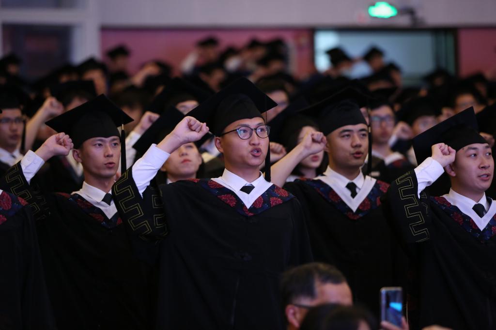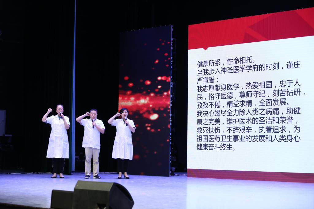 “救死扶伤,不辞艰辛,执着追求,为祖国医药卫生的发展和人类身心健康奋斗终生。”杏吧视频 医学院2020届毕业生全体肃立、庄严宣誓。