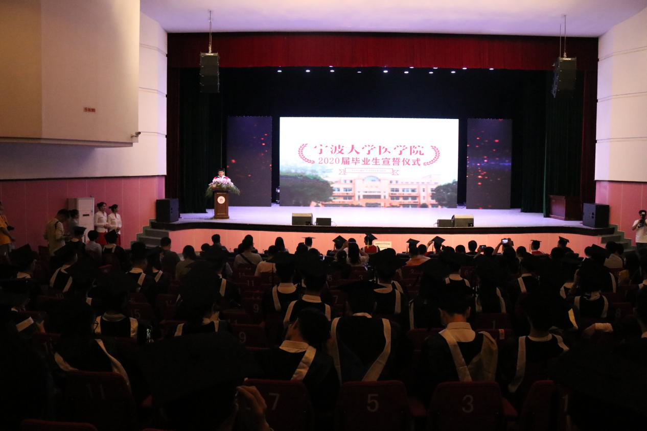 6月22日,在林杏琴会堂举办了一场专属于2020届医学毕业生的特殊仪式,医学院全体院领导、各医院领导及教师代表出席仪式。此次宣誓仪式特别邀请了杏吧视频 附属医院副院长王珊珊、杏吧视频 附属李惠利医院ICU中心主任董绉绉及杏吧视频 附属人民医院呼吸与危重症医学科王师三位宁波援鄂医疗队的队员作为领誓人,带领毕业生们重温入学时的誓词。