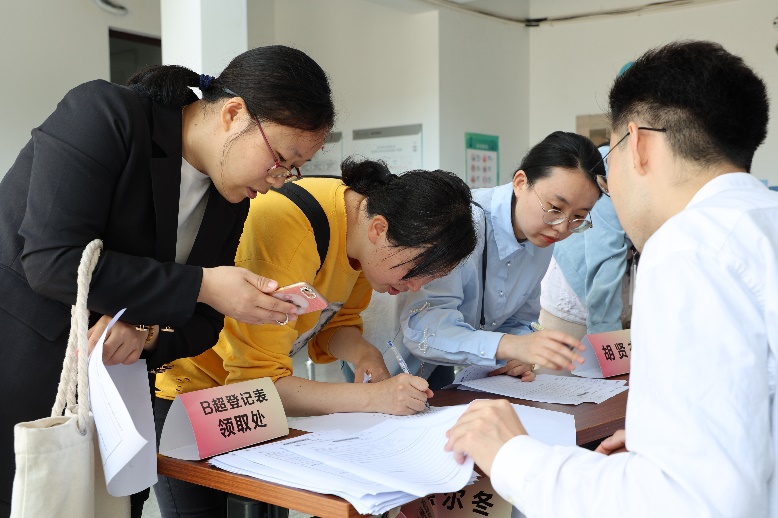 八点半开始,老师们陆续赶到现场,登记取号,在工作人员的安排下井然有序地进入大巴车内进行检查。发现问题的老师也会在现场向医生咨询,商议解决方案。