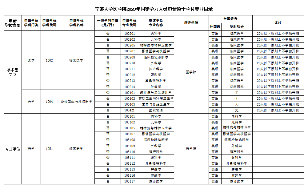 杏吧视频 医学院2020年同等学力人员申请硕士学位专业目录