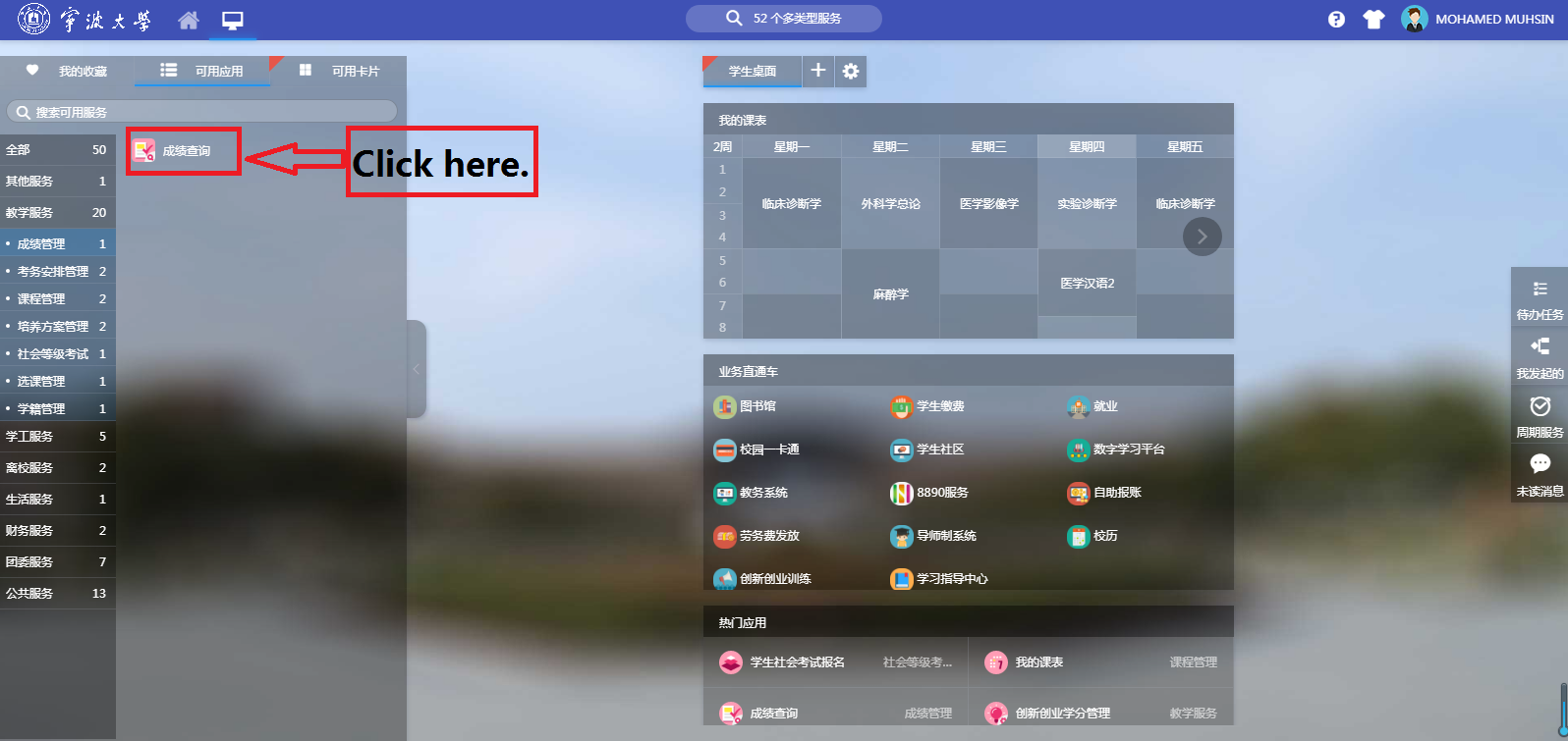 The name of the course is given in Chinese; you can refer to your class timetable to compare with.