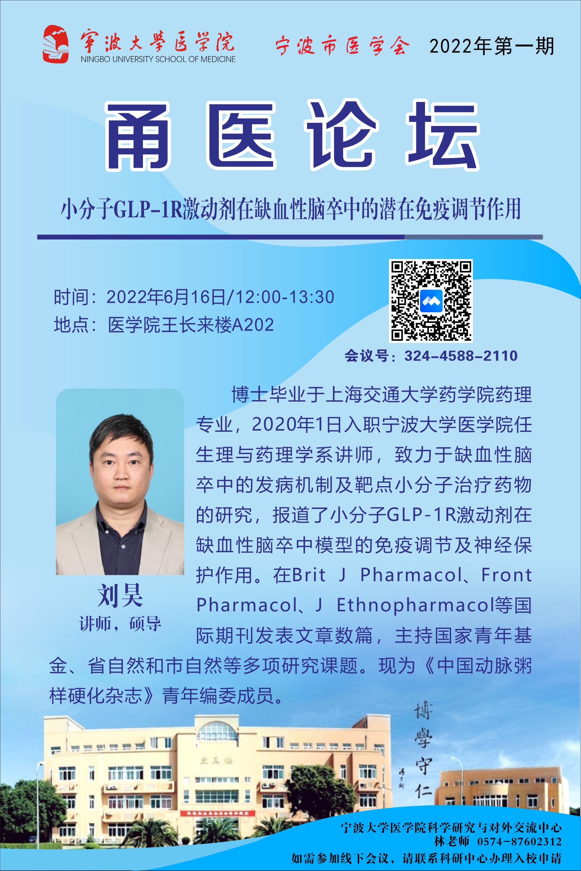 甬医论坛(2022)第一期:小分子GLP-1R激动剂在缺血性脑卒中的潜在免疫调节作用