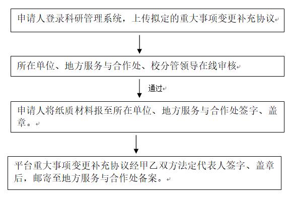 审批通过的重大事项变更补充协议(1式2份)在科研管理系统中在线生成,材料上有“审核通过”字样水印。