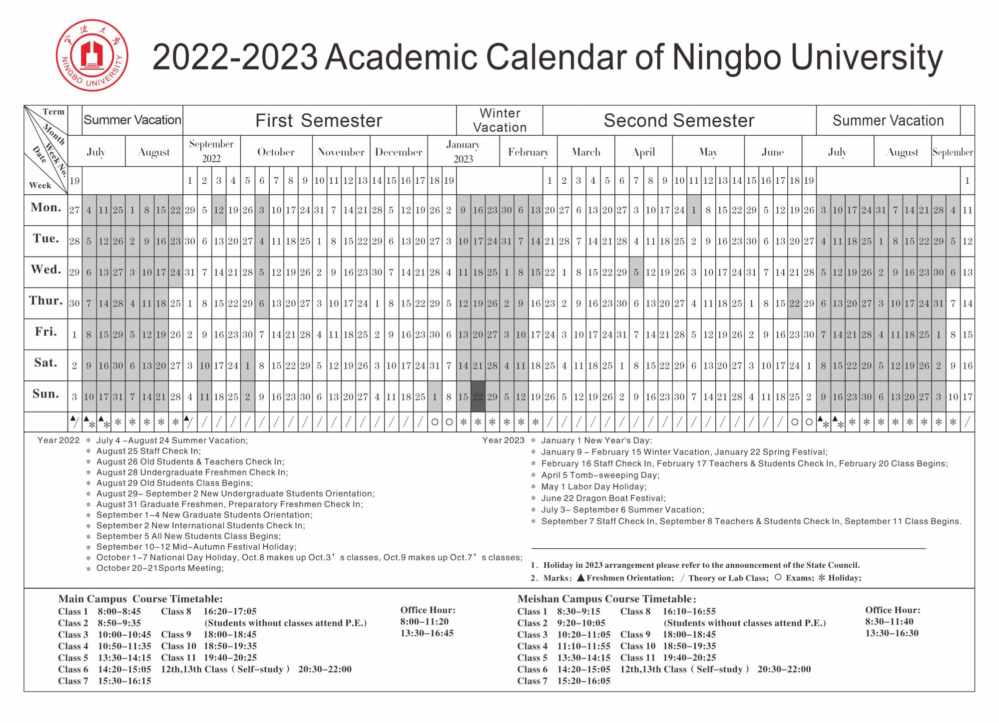 2022-2023 Academic Calendar of Ningbo University