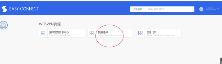 2、登录成功后显示webvpn网站能够访问的校内站点。点击教务选课,跳转至选课系统进行选课。