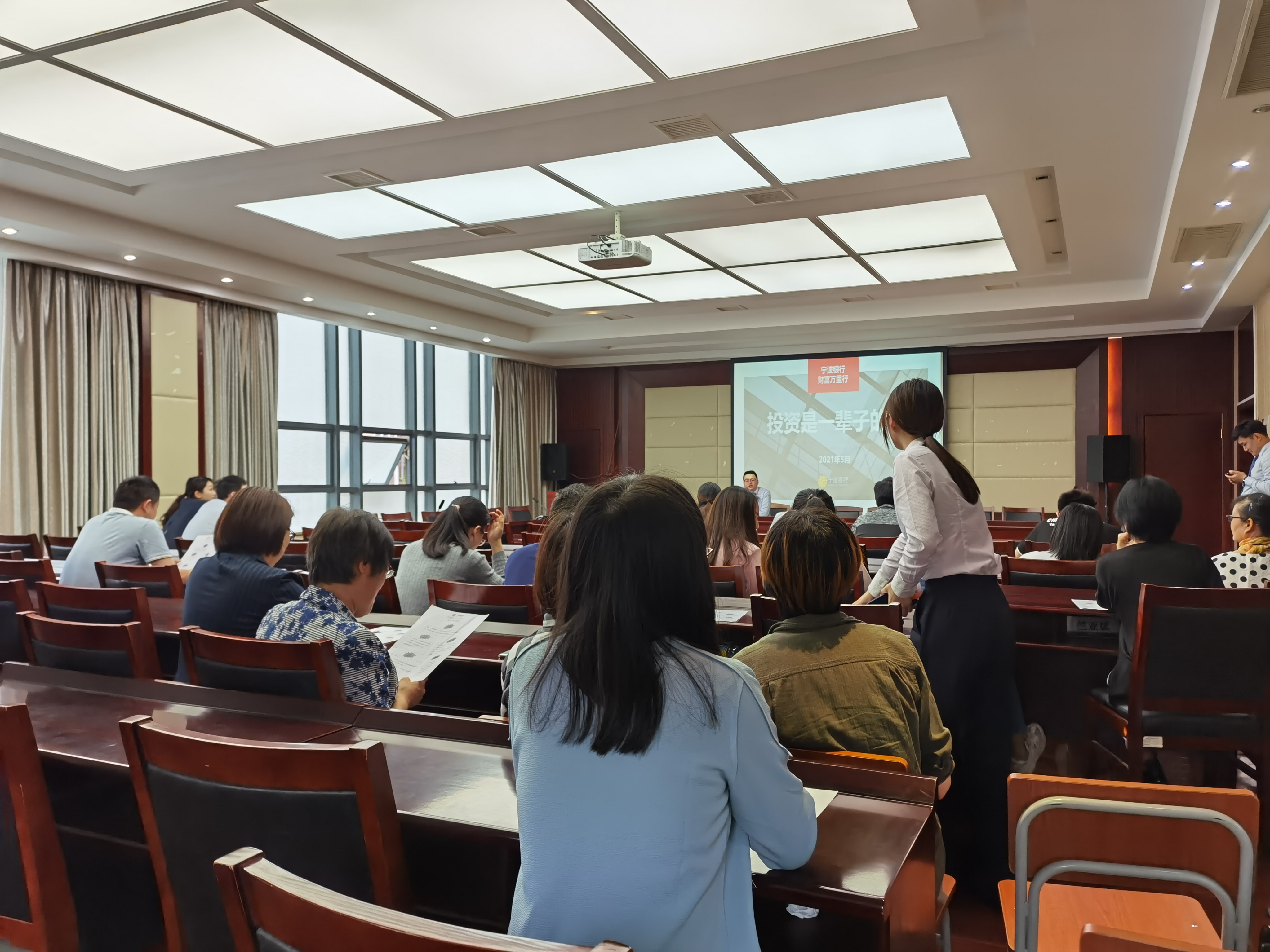 5月20日(本周四)12:10—12:40在王长来楼二楼多功能厅由江北支行个人分行的曹行长给大家进行讲解,投资事宜。