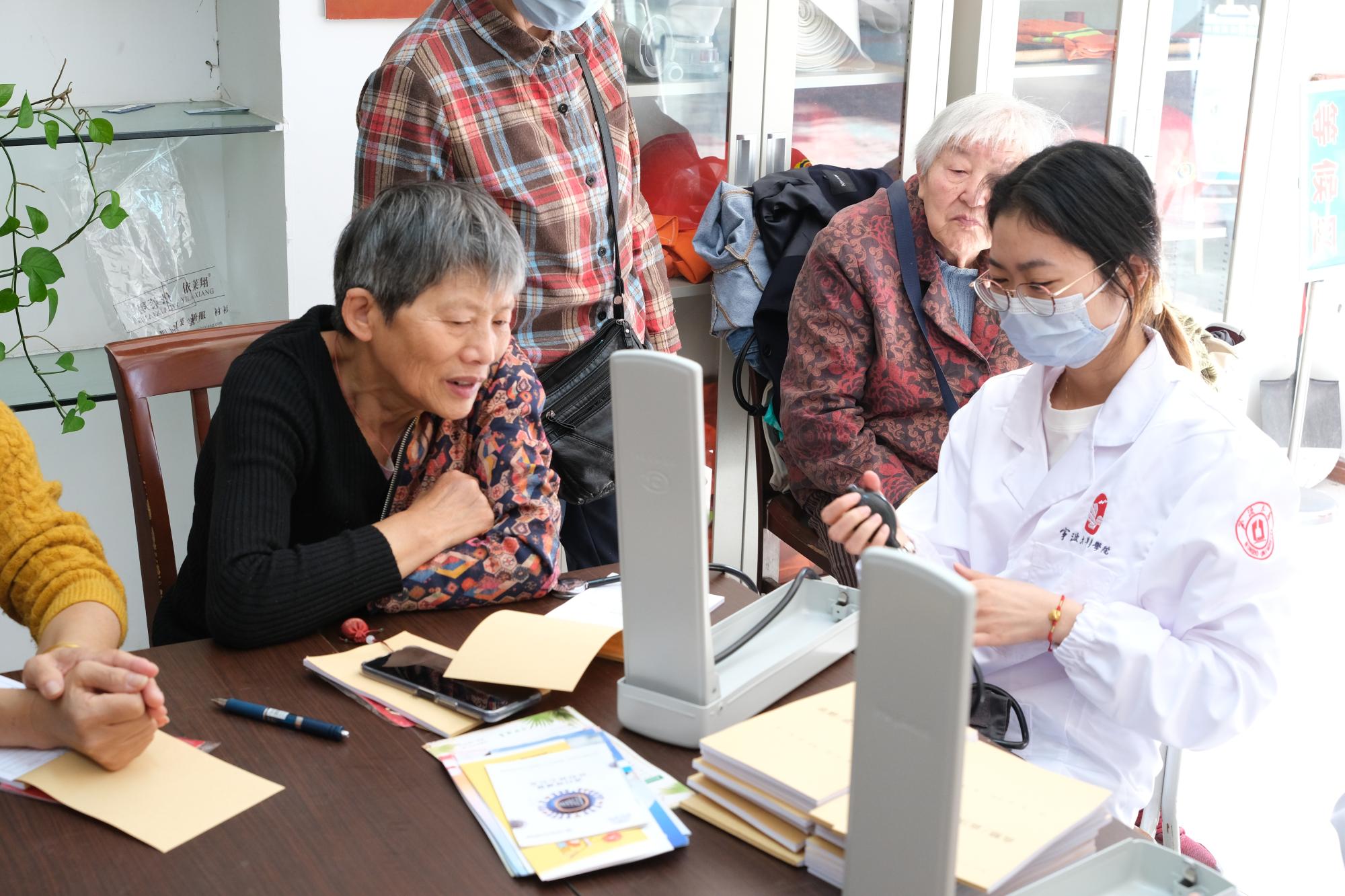 11月10日下午,9名持有“执业医师”资格的杏吧视频 医学研究生“千生走基层”团队赴红梅社区开展“义诊促健康,关怀暖人心”志愿服务活动。9名持有“执业医师”资格的医学研究生,近40名社区老年人参加此次活动