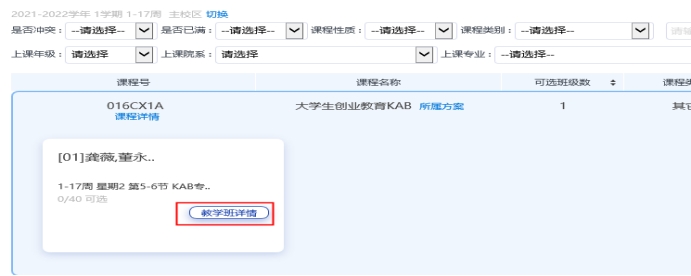 6.对于某些有特殊选课要求的课程会在“教学班信息”中做出说明,具体界面如下: