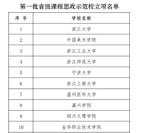 近日,浙江省教育厅公布了《浙江省教育厅关于公布第一批省级课程思政教学项目建设立项名单的通知》,我校入选首批省级课程思政示范校。此外,学校推荐的《音乐鉴赏》等15门课程思政示范课程、“杏吧视频 课程思政教学体系的改革与提升”等10个课程思政教学研究项目、“‘乐扬风华’课程思政教学团队”和“创新创业类课程群教学团队”等2个课程思政示范基层教学组织也同时入选首批建设名单。
